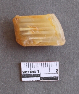 | Description / विवरण | It is a chalcedony fragment; it is rounded rectangular shape with bands. |