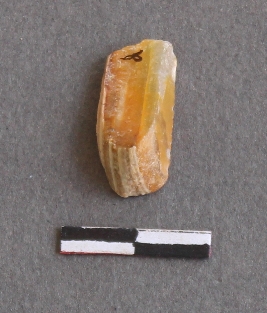 | Description / विवरण | It is flat chalcedony fragment, with rounded edges. One end has a flaked point. |