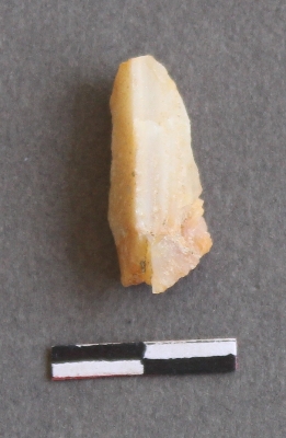 | Description / विवरण | It is flat chalcedony fragment, with rounded edges. One end has a flaked point. |
