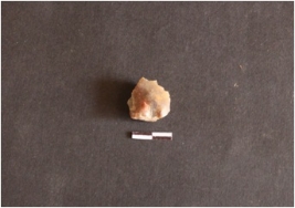| Description / विवरण | It is a chalcedony piece, with a pointed end. The base is flat. Surface bears flake scars. |