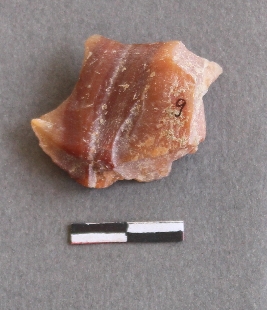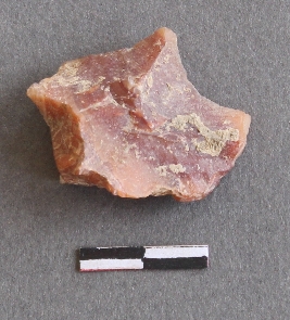 | Description / विवरण | The jasper fragment has flake scars and haphazard angular edges. |