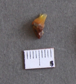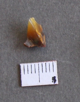 | Description / विवरण | The fragment has sharp edges and pointed ends with a median ridge. |