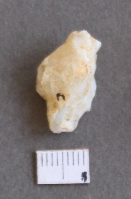 | Description / विवरण | The fragment has sharp edges and pointed ends with a median ridge. |