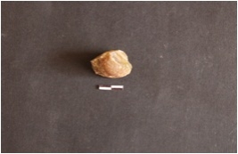 | Description / विवरण | The chert piece is roughly oval in shape, and has a central bulge as a result of ripple marks of flaking. The piece has a sharp edge as a result of flaking. |