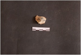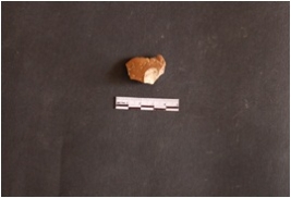 | Description / विवरण | The chert piece has a flake scar on one end. It is orangish in colour, and roughly triangular in shape. The piece has a protruding point on one end. |