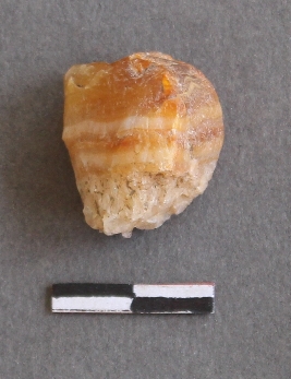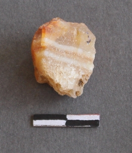 | Description / विवरण | It s a chalcedony fragment. Cortex on one end of a surface. It is patinated with ferrous impurities due to weathering. |