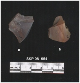 | Description / विवरण | This is a banded chert with a potion of cortex, with sharp cut marks, with striking platform. Cortex shows surfacial impurities. |