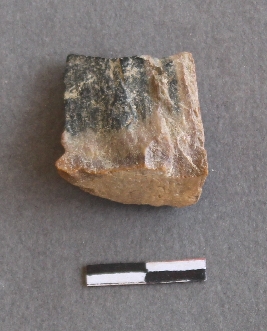 | Description / विवरण | The fragment have flaked surface and pointed ends. It is roughly squarish piece with a point and cortex part. |