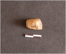 | Description / विवरण | The Chert core fragment has flake scars, blade scars, striking platform and diffused bulb on ventral side. The fragment has a cortex on one side. |