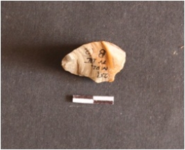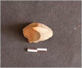 | Description / विवरण | Chert core fragment has flake scars, blade scars, striking platform and diffused bulb on ventral side. Ripple marks are evident; which are a result of flaking. |