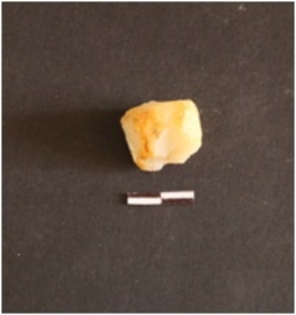 | Description / विवरण | An Agate core having prepared platform, flake scars on surface. The piece is roughly squarish in shape. |