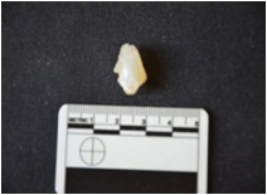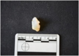 | Description / विवरण | Fragment of chalcedony core has blade scars and flake scars. |