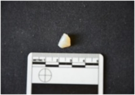 | Description / विवरण | Fragment of chalcedony core has flake scars on surface. |