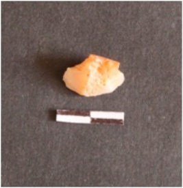 | Description / विवरण | The chalcedony fragment has sharp ends and flaked surfaces. |