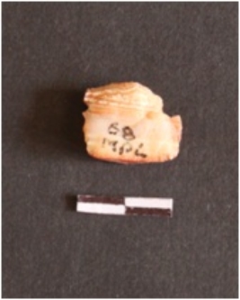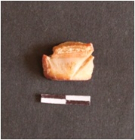 | Description / विवरण | The chalcedony fragment has a positive bulb, and shar p edges as a result of flaking. |