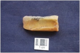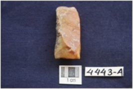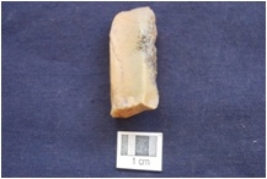 | Description / विवरण | A chert core. Almost rectangular in shape. Cortex on one side and scars on the other. |