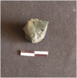 | Description / विवरण | The chert flake has a broad flaked edge and a rounded basal part with a shallow bulb of percussion. |