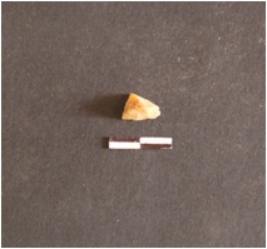 | Description / विवरण | Triangular piece of lithic debitage, with a pointed end and median flaked ridge. |