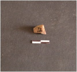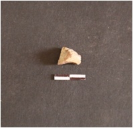 | Description / विवरण | Chert piece with pointed end and flake scars on the surface. |