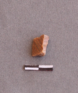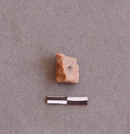 | Description / विवरण | It is an agate fragment, with bulb of percussion on ventral side of the fragment. Flake ridges on the surface. It is a banded agate and translucent in appearance. |