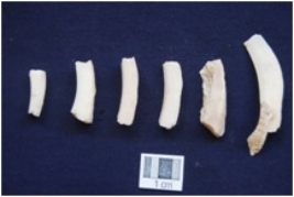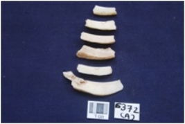 | Description / विवरण | 8 pieces of shell bangle manufacturing waste. White. |