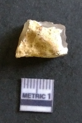 | Description / विवरण | The chalcedony piece has surfacial flake scars and a part of cortex on the piece. The piece is translucent in appearnce, with light yellow coloration. The piece is of crypto-crystalline nature. Flake scars are visible on the surface and sharp angular edges are the result of lithic knapping. |