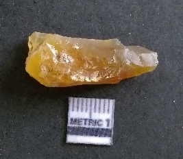 | Description / विवरण | The chalcedony piece has surfacial flake scars and a part of cortex on the piece. The piece is translucent in appearnce, with light yellow coloration. The piece is of crypto-crystalline nature. Flake scars are visible on the surface and sharp angular edges are the result of lithic knapping. |