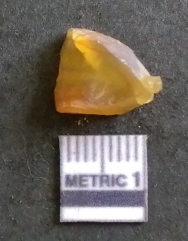 | Description / विवरण | The chalcedony piece has surfacial flake scars and a part of cortex on the piece. The piece is translucent in appearnce, with light yellow coloration. The piece is of crypto-crystalline nature. Flake scars are visible on the surface and sharp angular edges are the result of lithic knapping. |