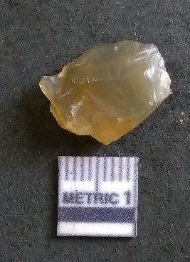 | Description / विवरण | The chalcedony piece has surfacial flake scars and a part of cortex on the piece. The piece is translucent in appearnce, with light yellow coloration. The piece is of crypto-crystalline nature. Flake scars are visible on the surface and sharp angular edges are the result of lithic knapping. |