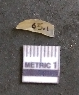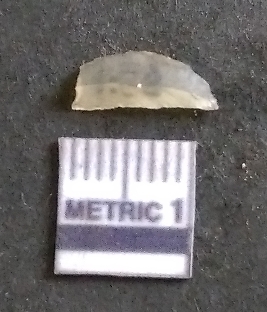 | Description / विवरण | The chalcedony lunate is small, transparent and has sharp flaked edges. The piece is flat and shows a curvature. |