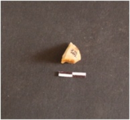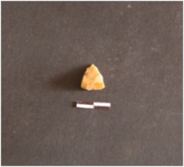 | Description / विवरण | Agate core fragment has prepared platform and blade scars on surface. |