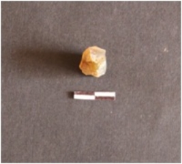 | Description / विवरण | Chalcedony core has prepared platform, blade scars on surface and heated. |