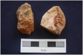 | Description / विवरण | Nodule and Flake, made on Agate, by-product of stone tool manufacturing. |