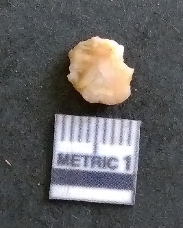 | Description / विवरण | The rosy quartz flake is roughly rounded in shape, with flaked edges and a bulb of percussion. The piece is flat and has a crypto-crystalline matrix. |