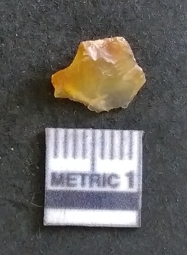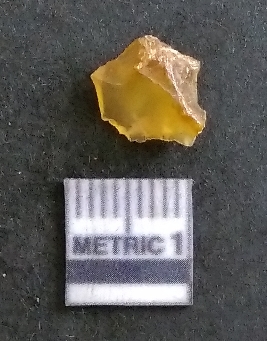 | Description / विवरण | The chalcedony flake has surfacial flake scars and ripple marks on the surface pointing at the knapping activity. The secondary flaking is evident on the surface of the piece. The flake is translucent in appearance, with yellowish coloration. |