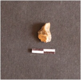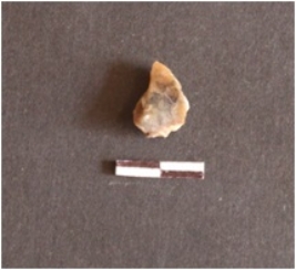 | Description / विवरण | The agate piece has tapering sides and pointed end. The surface has negative flake scars. |