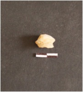 | Description / विवरण | Chalcedony core fragment having crested ridge, flake scars on surface. |