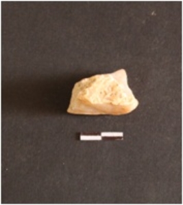 | Description / विवरण | The chalcedony fragment has numerous flake scars on the surface as a result of flaking. |