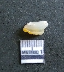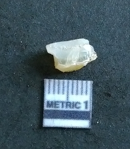 | Description / विवरण | The chalcedony flake is small, yellowish in colour and has a translucent appearance. The piece has an eneven fracture pattern and is crypto-crystalline in nature. |