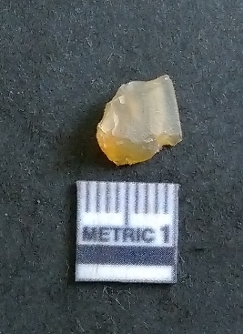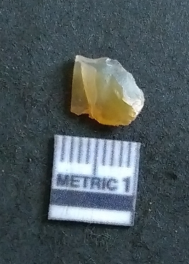 | Description / विवरण | The chalcedony flake is small, yellowish in colour and has a translucent appearance. The piece has an eneven fracture pattern and is crypto-crystalline in nature. |