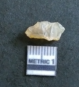 | Description / विवरण | The chalcedony flake is small, yellowish in colour and has a translucent appearance. The piece has an eneven fracture pattern and is crypto-crystalline in nature. |