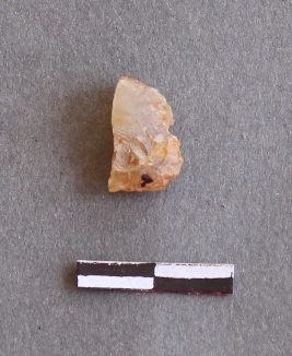 | Description / विवरण | The chalcedony piece has sharp edges and angular point as a result of flaking. |
