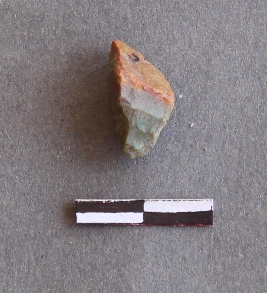 | Description / विवरण | The jasper piece has sharp edges and angular point as a result of flaking. |