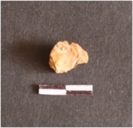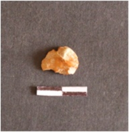 | Description / विवरण | The chalcedony piece is a by product of lithic knapping. It has angular ends and flake scars on the surface. |