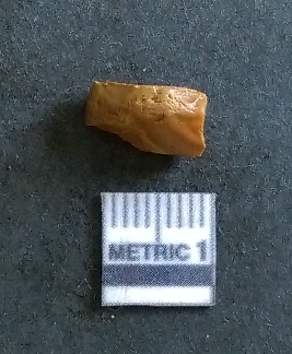 | Description / विवरण | The chalcedony flake is brown in colour, semi-transparent and with sharp flaked ends. The piece is crypto-crystalline in nature and exhibits profusion of secondary flaking. |
