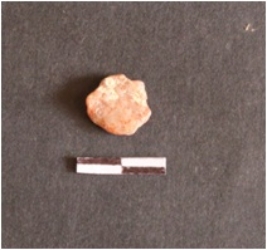 | Description / विवरण | The chalcedony piece is a by product of lithic knapping. It has angular ends and flake scars on the surface. |