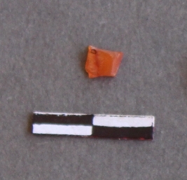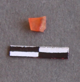 | Description / विवरण | Carnelian fragment with sharp edges and pointed end. |