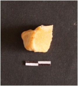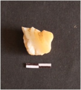 | Description / विवरण | The chalcedony piece is a by product of lithic knapping. It has angular ends and flake scars on the surface. |