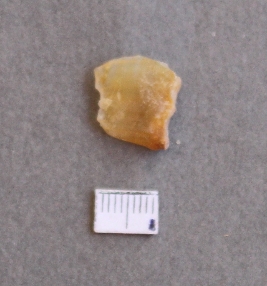 | Description / विवरण | It is a chalcedony fragment, with a bulb of percussion on the ventral side. Cortex on one end. |