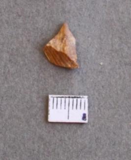 | Description / विवरण | It is a chert fragment, with a striking platform, cortex on one end; there are many flake scars with ripples on it. |